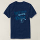 Camiseta LAX. Muitos estilos disponíveis para homens, mulheres e crianças. Rode design em tons azuis com o texto LACROSSE LIKE A BOSS e um gráfico de esfera e de pau de lacrosse. Camiseta masculina, versão escura.