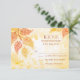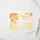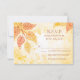 Folhas bonito (douradas / laranja / amarelas) com uma cor de água clara e aplaudida sentem fundo. Excelente para um evento de casamento ao ar livre. Fácil de personalizar com seu próprio texto. Outras cores disponíveis.Esta placa rsvp pode ser alterada para uma placa de recepção/direção (substitua o texto pelas suas instruções) Consulte a minha loja para ver os itens correspondentes. Ilustração original por pj_design.
