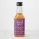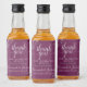 Estas mini etiquetas de garrafa de licor são perfeitas como favores de casamento ou adições às suas bolsas de banho de noiva. A figura é um design simples, mas bonito, com filigre de folha fina de cinza prateada e caligrafia elegante em um fundo cor roxo, magenta, ameixa ou morango. O texto diz: obrigado para comemorar conosco, e há espaço para os nomes dos casais, data de casamento e conteúdo da garrafa. Sofisticado, na moda e chic.