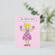 Uma senhora de vestido cor-de-rosa que tem um padrão de dados dizendo "É uma festa de bunco". A imagem tem um fundo cor-de-rosa pastel. A senhora está segurando um coquetel rosa e um bolo de xícara.