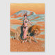 Renderização digital em 3D de uma linda jovem e de um leão no fundo da paisagem desértica