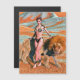 Renderização digital em 3D de uma linda jovem e de um leão no fundo da paisagem desértica