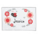 Diversão da joaninha e flores em tons de vermelho, rosa, preto e branco. O padrão moderno estilizado de flores rosa e vermelhas com duas personagens diferentes de insetos.