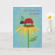Ladybug no cartão de saudação amarelo da flor