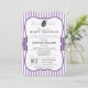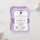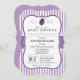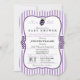 É uma garota! O chá de fraldas de joanilha roxa e preta elegante convida para faixas verticais roxas lavandas e padrões de bolinhas preto e branco com aparência formal vintage. Excelente para garotas joaninhas, insetos, chás de fraldas temáticos; perfeito para chás primavera. Convite de forma de colchete retrô.