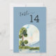 A carta de número da mesa de casamento do Lago Evergreen Watercolor com uma paisagem cênica externa idílica. O número da tabela é editável e exibido em ambos os lados. Paisagem com árvores verdes e verdes, montanhas azuis e um lago ainda sob um céu azul suave. A design está em tons de azul empoeirado e verde e é escrita com elegância e tipografia moderna. Por favor, procure na minha coleção Lake Evergreen itens correspondentes ou envie-me uma mensagem para criar os modelos de que necessita.