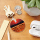 Esta chaveiro apresenta uma cena do lago Lanier no pôr do sol.