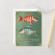 Este cartão postal é obrigatório para qualquer um que adora pescar! Apresenta dois peixes de água fresca lindíssimos (robalos), cada um com listras nas cores náuticas vermelho e azul. Além disso, tem todas as informações essenciais, como as coordenadas do lago Tahoe e o texto personalizável para o estado e/ou a cidade. É o cartão decorativo perfeito para qualquer um que esteve em férias de pesca no Lago Tahoes, turista, residente ou fã de pesca!