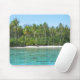 As palmeiras luxúrias cobrem esta ilha do motu na lagoa de Moana de turquesa em Moorea.