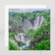 Pintura a óleo de grandes cachoeiras no Parque Nacional dos lagos de Plitvice, Croácia. Cascata de duas grandes cachoeiras no verão. Paisagem de cascata de floresta nas montanhas.