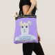 Linda lama na lavanda azul Tote Bag. Linda lama com fitas coloridas sobre as nuvens... alto no céu. O nome de Lama tem vários significados: significa Chamada, lama, sabedoria, chama (sagrada também), etc e para trás é... Sou Tudo. Alto nas montanhas, onde há lhamas não há dramas! Bolsa, bolsa de praia, bolsa de compra, moda.