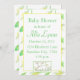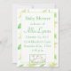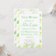 Um doce convite de chá de fraldas decorado com um pequeno cordeiro sentado num prado de flores desenhado a lápis e tinta coloridos. O fundo é decorado com uma flor amarela macia e um padrão de folha pintados em aquarela. Você pode alterar a mensagem, a fonte e a cor da fonte para o ajustado das suas necessidades.
