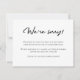 Expresse o seu pesar por estar em posição de cancelar ou adiar o seu evento, festa ou celebração, e a esperança de reagendá-lo o mais rapidamente possível com esta simples, elegante e moderna nota de tipografia "Lamentamos". ++++++++++++++ Fácil de personalizar com o seu texto. ++++++++++++++ Se quiser que o título ou o design seja modificado, por favor, envie-me uma mensagem!