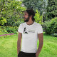 Camiseta simples com a silhueta usando um cortador de relva. Perfeito para o seu setor de jardim, manutenção de gramados ou paisagens. Tem nome comercial, linha de etiqueta e números de telefone. Totalmente editável para atender às suas necessidades. Simples mas impactante. Veja a coordenação de itens como cartões de visitas em nosso compro, Finch Encantado.