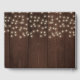 Livro de hóspedes russo personalizado com luzes brancas e brilhantes sobre fundo de madeira castanho-escura.+++++++ Ideal para inverno, outono ou país rústico elegante no verão no exterior ou casamentos com temas agrícolas.