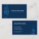 Um simples motivo de bares brilhantes, azuis e azuis-escuros iluminados fornece um gráfico moderno e atraente no modelo de cartão de negócios deste eletricista. Colocado sobre um fundo marinho escuro. © 1201AM CREATIVE