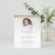 Um valor para o alternativo do ORÇAMENTO em tamanho menor de 4,5 x 5,6" de semirbrilho de 110 lbs, que é de espessura semelhante a um cartão postal (no entanto, não é adequado para uso como cartão postal). POR FAVOR, NOTE que existe UM por folha. Orçamento 2024 Formando Anúncio de Graduação de Foto Dourada Glitter. As bordas reluzentes e legantes estão no topo de ambos os lados. Formando está em um roteiro elegante com pântanos. Personalize facilmente o texto de acordo com as suas necessidades, inclusive no sentido inverso, e substitua a imagem de exemplo pela sua. Para manter o olhar minimalista contemporâneo dessa design, uma foto com fundo colorido claro funcionará bem.