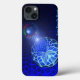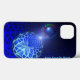 Uma imagem fractal, azul, ligeiramente modificada, que parece ser um cilindro oco aberto ao vácuo do espaço numa extremidade onde se vê uma estrela que está a brilhar. Uma esfera, com a mesma imagem fractal, aparece no primeiro plano como se estivesse a mover-se através do cilindro. Adicione seu próprio texto.