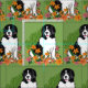Landseer Newfoundland, em um jardim ao redor de liliusas, fundo verde, tecido colorido, para pessoas que amam recém-nascidos e cães da nova terra, prefeito para cortinas de quarto de quarto de quarto, cortinas de artesanato, travesseiros e cobrir de sofá, decoração doméstica ou ideias de artesanato