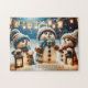 Quebra-cabeça com três bonitos bonitos bonitos bonitos bonitos bonitos, com lanternas a observar como pequenos flocos de neve caem do céu. Excelente de Natal!