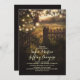 Casamento vintage de convites com cordas de luzes penduradas nos galhos da árvore antiga. Na moda e convite criativo para casamentos de campo e casamentos de jardim com luzes ou lanternas brilhantes. — Todos os elementos design criados por Jinaiji