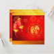 Imagem com lanternas vermelhas e douradas chinesas com ideograma do rato, 2020 e "Feliz ano novo" em chinês sobre fundo vermelho + Ouro de papel cortado de um rato com saudação em inglês ao seu redor. Cartão de convite simples quadrado design com textos para o Partido Chinês de Ano Novo a serem personalizados. Você pode facilmente alterar o texto (fonte, cor, tamanho e posição) clicando no botão personalizar. Correspondência com cartão postal, cartão de saudação e muito mais... Perfeito para o Ano Novo Chinês do Rato 2020.