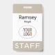 Personalize facilmente nosso crachá de nome de funcionarios profissional com o logotipo da sua empresa, o nome do funcionário ou outro texto personalizado. É plástico pvc e disponível com um jardim, clipe ou um rolo retrátil. Projetado em bege e em outras cores com uma design moderna minimalista do MISOOK. Disponível em outras cores e todas as cores são personalizáveis. Nenhuma quantidade mínima de ordem e nenhuma taxa de configuração. Todas as encomendas são satisfeitas pela Zazzle em produtos do Zazzle. O MISOOK NÃO tem suas informações de personalização, envio ou cartão de crédito, portanto entre em contato diretamente com a Zazzle para fazer perguntas, inclusive sobre como personalizar seu design.
