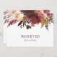 Este floral laranja burgundy | placa reservada é perfeita para o seu casamento ruidoso, verde escuro e de jardim de ouro. Design apresenta uma coroa ou buquê de pêssego de cor d'água minimalista, rosa poeirento, roxo e rosas claro florais juntamente com cobre, verde, amarelo e verde cor de ferrugem. As flores nesta design são papoila, rosa e pedônia. O design é ideal para um simples e elegante primavera, verão ou casamento no outono. Por favor, encontre outra papelaria de casamento no resto desta coleção.