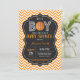 Convite do chá de fraldas do basquetebol. É um menino. Quadro e fundo alaranjado de Chevron. Para uma personalização mais adicional, clique por favor "personalizam-no" botão e usam-nos nossa ferramenta de design para alterar este modelo.