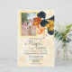 Este convite de casamento laranja e azul será maravilhosamente completo com envelopes de lírio azul de tigre e marinho, etiquetas de endereço de retorno e detalhes da festa. O quadro de fotos com aquarela é fácil de redimensionar e reposicionar, e adiciona um toque exclusivo. Esses programas são fáceis de personalizar e outras opções de tamanho estão disponíveis. Perfeito para a laranja queimada, tema azul marinho. Queda, outono ou casamento no final do verão.