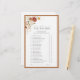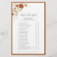 Jogo moderno e elegante de chá de panela "ele disse, ela disse", com buquê floral de cor d'água de tons tensos, quentes e neutros de blush, branco, amarelo marigold e siena queimada, bordado em uma cor laranja queimada e coordenadora. Personalize suas perguntas em preto suave, acentuado com uma bela caligrafia feita à mão moderna. Parte de uma suíte coordenada. Ver suite aqui: https://www.zazzle.com/collections/elegant_orange_watercolor_floral_bridal_shower-119388823689132589 Contacte o designer para produtos correspondentes. Copyright Anastasia Surridge for Elegant Invites, todos os direitos reservados.