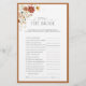 Jogo moderno e elegante de chá de panela "quem conhece melhor a noiva", com buquê floral de cor d'água de tons tensos, quentes e neutros de blush, branco, amarelo marigold e siena queimada, bordado em uma laranja queimada e coordenadora. Personalize suas perguntas em preto suave, acentuado com uma bela caligrafia feita à mão moderna. Parte de uma suíte coordenada. Ver suite aqui: https://www.zazzle.com/collections/elegant_orange_watercolor_floral_bridal_shower-119388823689132589 Contacte o designer para produtos correspondentes. Copyright Anastasia Surridge for Elegant Invites, todos os direitos reservados.