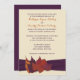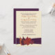 O outono deixa praticamente saltar da canvas de marfim neste convite para casamentos outono em laranja queimado, vermelho profundo, ouro e roxo. A fita roxa combina com a parte de trás roxa e os nomes roxos neste convite para casamento de outono ****POR FAVOR, OBSERVE que alguns dos documentos irão alterar a cor da design. Se você redimensionar o convite, ou se você alterar as fontes, ou o tamanho da fonte, parte do design e/ou texto poderá ser cortada. Tudo será impressão como você vê no seu monitor. Não verei seu convite, e Zazzle NÃO corrigirá nada (digitação, alinhamento, etc.). O texto e o papel são todos personalizáveis. Se precisar de ajuda para este convite, envie-me um e-mail ANTES de fazer seu pedido. Se você precisar de outros itens correspondentes, envie um e-mail para niteowlstudio@gmail.com.