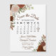 Este belo casamento magnético, exceto os cartões de data, apresenta um design floral rústico, mas elegante, pintado à mão com rosas de aquarelas em tons de laranja ferrugem e números queimados, cercado por um bando de folhas de outono, verde e folhagem de outono. Há um calendário personalizável mostrando o mês do seu casamento com um coração em volta do seu dia especial. Fashionável, boêmico e chic, este cartão é uma forma excelente de garantir que seus amigos e família estejam cientes do seu próximo casamento.