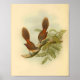 Ilustração vintage de 1884 de Larat Fantail Flycatcher. Com penas castanhas, vermelhas e brancas sentadas num galho de árvores.