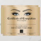 Moderno Dourado Lashes & Brows Certificado de Prêmios de Conclusão de Salão.