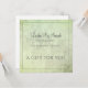 Um cartão-presente de serviços de beleza verde com textura adorável, com um nome comercial de tipo script para personalizar com as suas informações. Você pode adicionar uma data de expiração ou outras informações. Este adorável certificado é adequado para qualquer serviço de beleza, como pintura e extensões de lascas, maquiagem, cabelos, unhas e salões.
