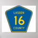 Esta design é uma placa de estrada de Lassen County. O cartaz diz que o condado de Lassen tem o número 16. Este cartaz de estrada de Lassen, design, parece excelente nesta Poster