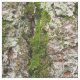 O tecido à moda caracteriza um teste padrão de repetição corajoso do musgo no latido. O latido de pinheiro do envelhecimento desvaneceu-se e perdeu-se algumas de suas camadas ultraperiféricas. O musgo verde vibrante está crescendo em sulcos verticais no latido. A fotografia macro mostra as listras alternas do latido e do musgo assim como a textura de cada um. O latido é mergulhado, escamoso, com gradação finas da cor: cinzas, marrons, e mesmo verde pálido. O musgo é compreendido dos cabelos finos curtos inumeráveis, como se a árvore quis alguns destaques verdes da pele.
