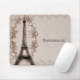 Adicione um toque elegante ao seu escritório doméstico ou ao seu espaço de trabalho, com este design de mousepad contemporâneo que apresenta a Torre Eiffel contra uma espiral verde e um fundo de carimbo de correio em marrom latte. O texto personalizável permite alterar fontes, alterar cores e tamanhos de texto conforme desejar. Personalize você mesmo ou faça um presente de excelente.