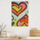 Detalhe de pintura de dois corações da pintura "Laugh". Os corações são amarelo, laranja, pêssego, rosa, magenta, e vermelho. A mídia é aquosa com brilho de vidro. Este poster é excelente para muitas ocasiões, como casamentos, noivados, anúncios de nascimento, cartões salve a data, convites para chás, Dia de os namorados e muito mais! Personalize o impressão de poster adicionando seu próprio texto a ele.