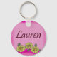 Personalizado com o nome Lauren num fundo cor-de-rosa com margaridas.
