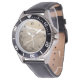 Um relógio com uma imagem de uma emboscada branca oceânica na praia.
