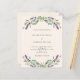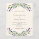 Um fundo de cor bege decorado com flores de lavanda roxa e verde de eucalipto. Personalize e seus nomes e detalhes. 1 folha = 1 convite impresso de borda a borda. a