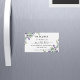 Um cartão magnético de salvamento de data para um casamento. Um fundo branco, florais decorados de lavanda e verde de eucalipto. Personalize e adicione uma data e seus nomes. O texto: Salvar a Data é gravado com um script de estilo com letra de tendência grande.