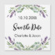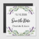 Uma Imã salve a data para seus convidados de casamento. Um fundo branco na moda, decorado com flores lavandas e verde de eucalipto. Personalize e adicione seus nomes e data de casamento.