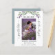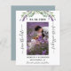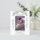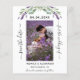 Um casamento moderno Salve o cartão com fotos de Data. Decorado com flores de lavanda, flores e verde de eucalipto. Personalize e adicione sua foto, data, nomes.