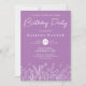 convites de festas de aniversários de flores silvestres lavandas com flores em uma linha moderna. Personalize nomes, datas e informações.