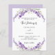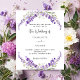 Um fundo branco decorado com flores de lavanda impermeáveis Personalize e seus nomes e detalhes. Fundo: lavanda, fundo colorido violeta. 1 folha = 1 convite impresso de borda a borda.