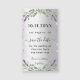 Um cartão magnético de salvamento de data para um casamento. Um fundo com aspecto sujo de prata, flores de lavanda decoradas e verde de eucalipto e brilho violeta. Personalize e adicione uma data e seus nomes. O texto: Salvar a Data é gravado com um script de estilo com letra de tendência grande.